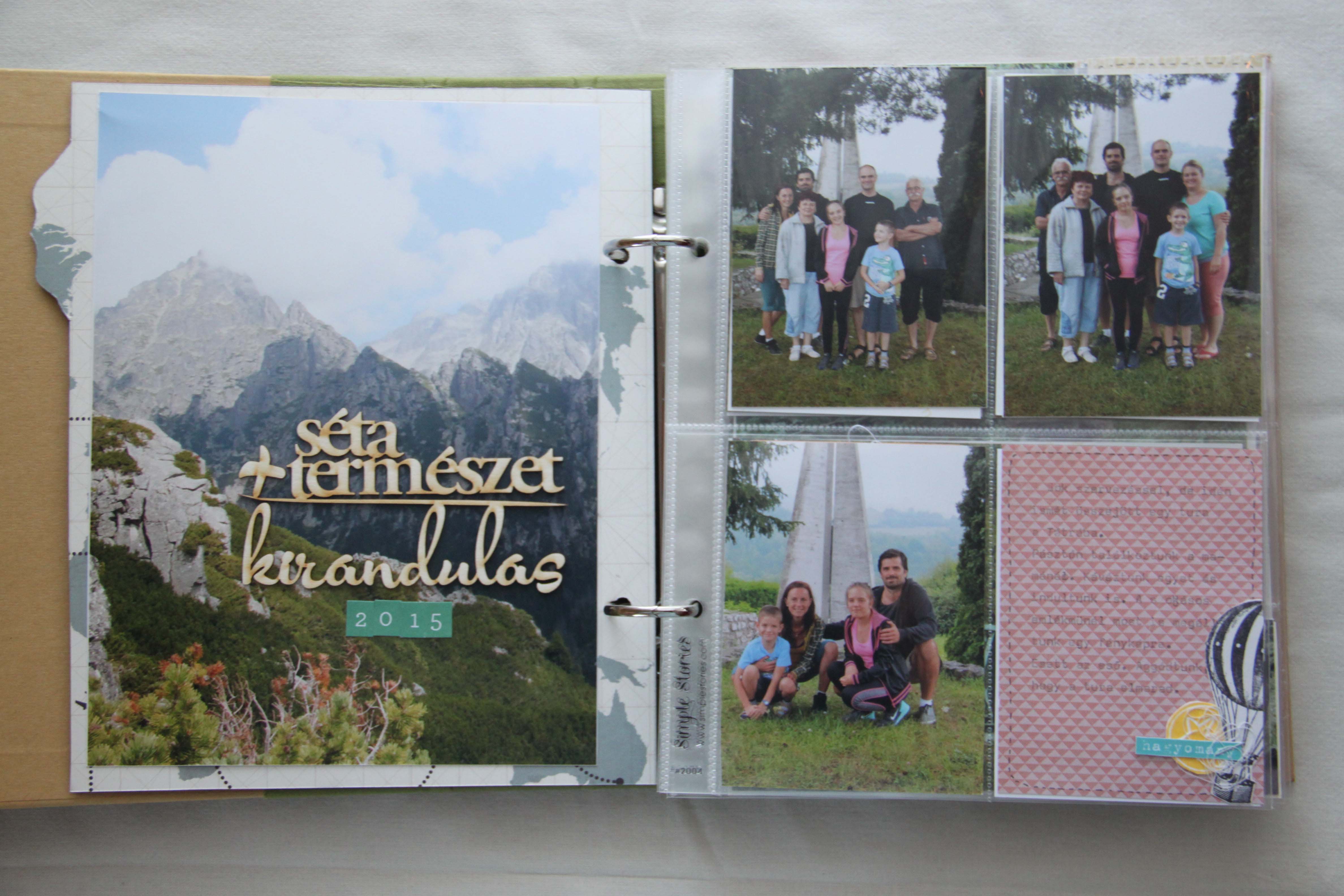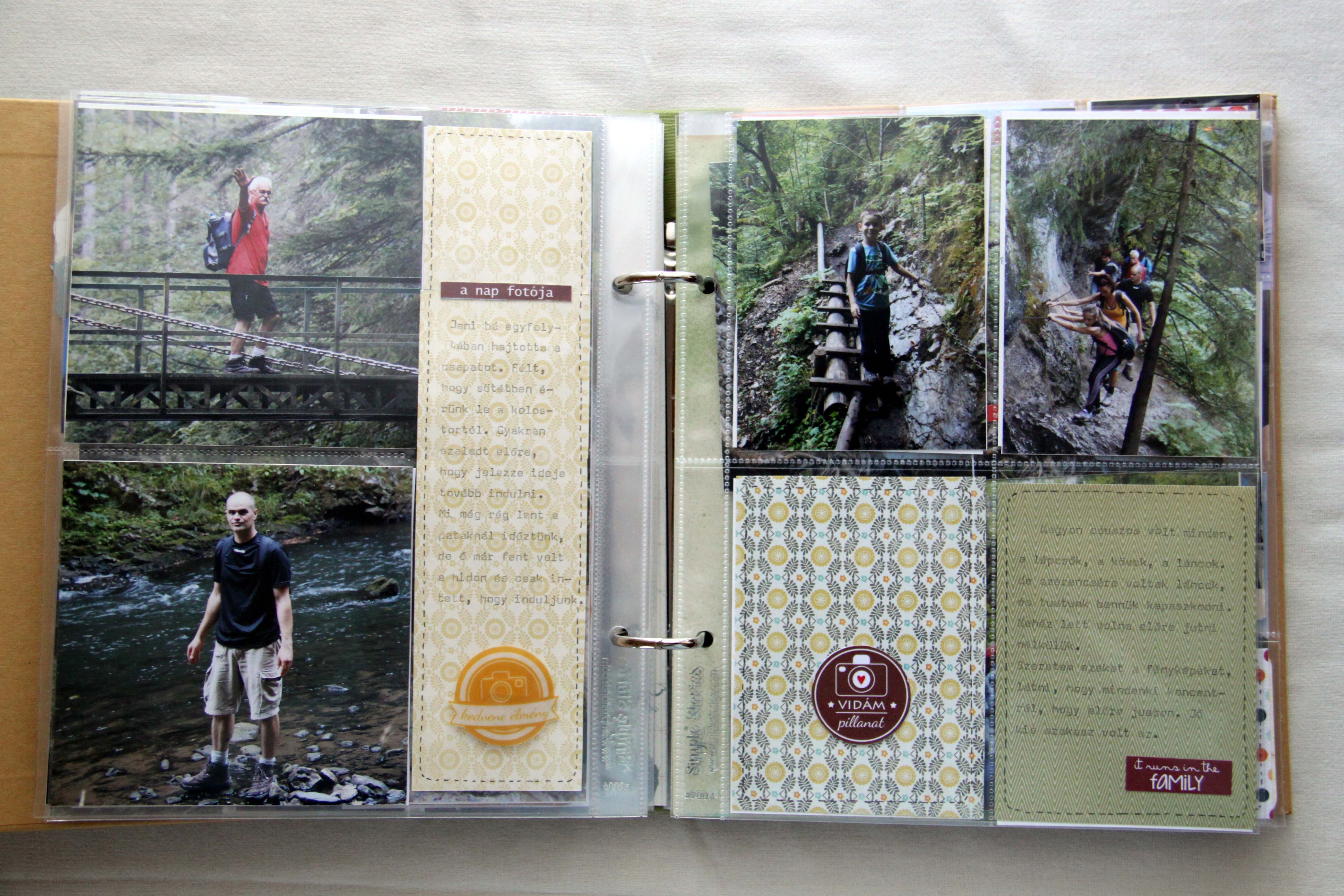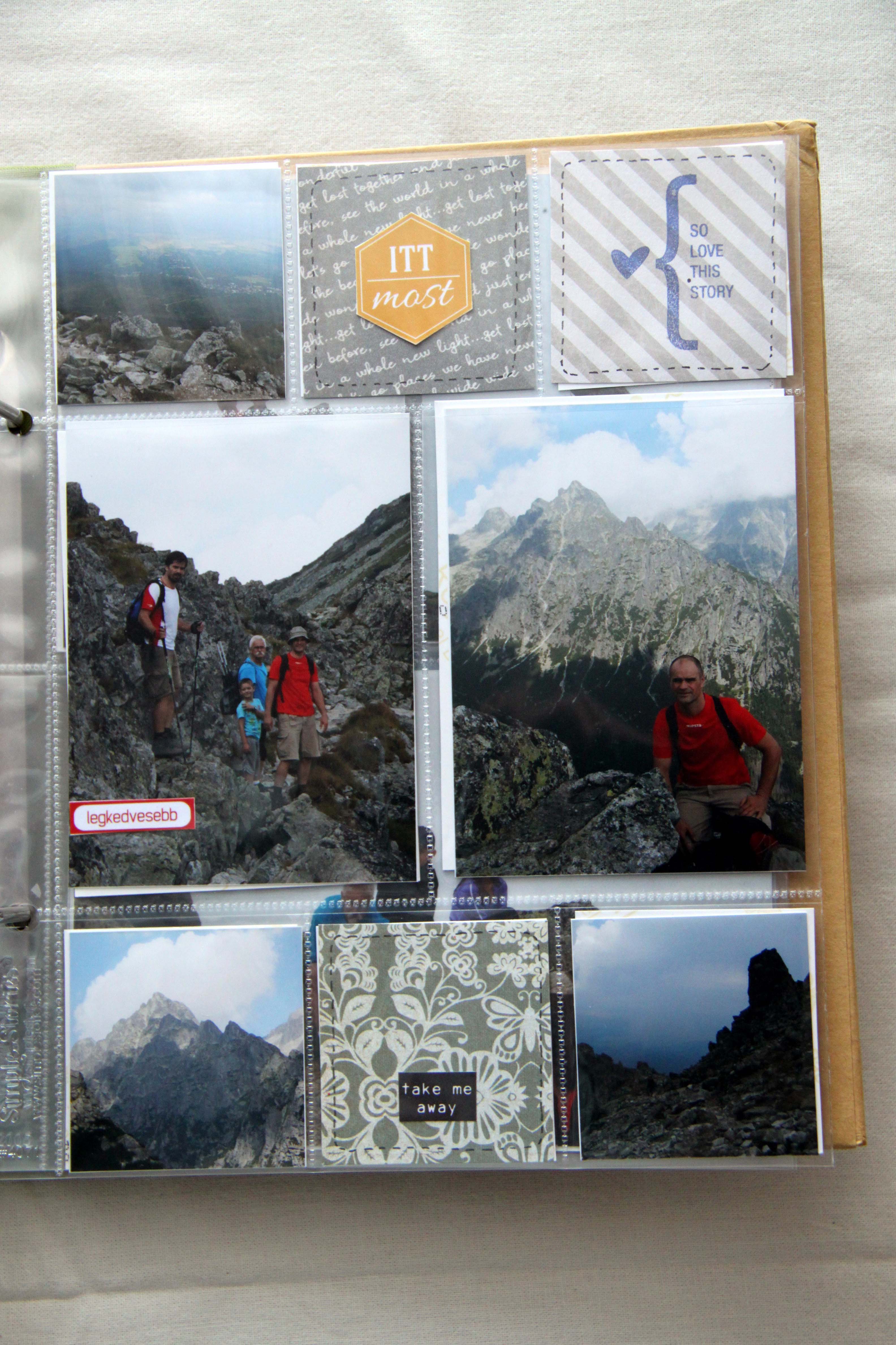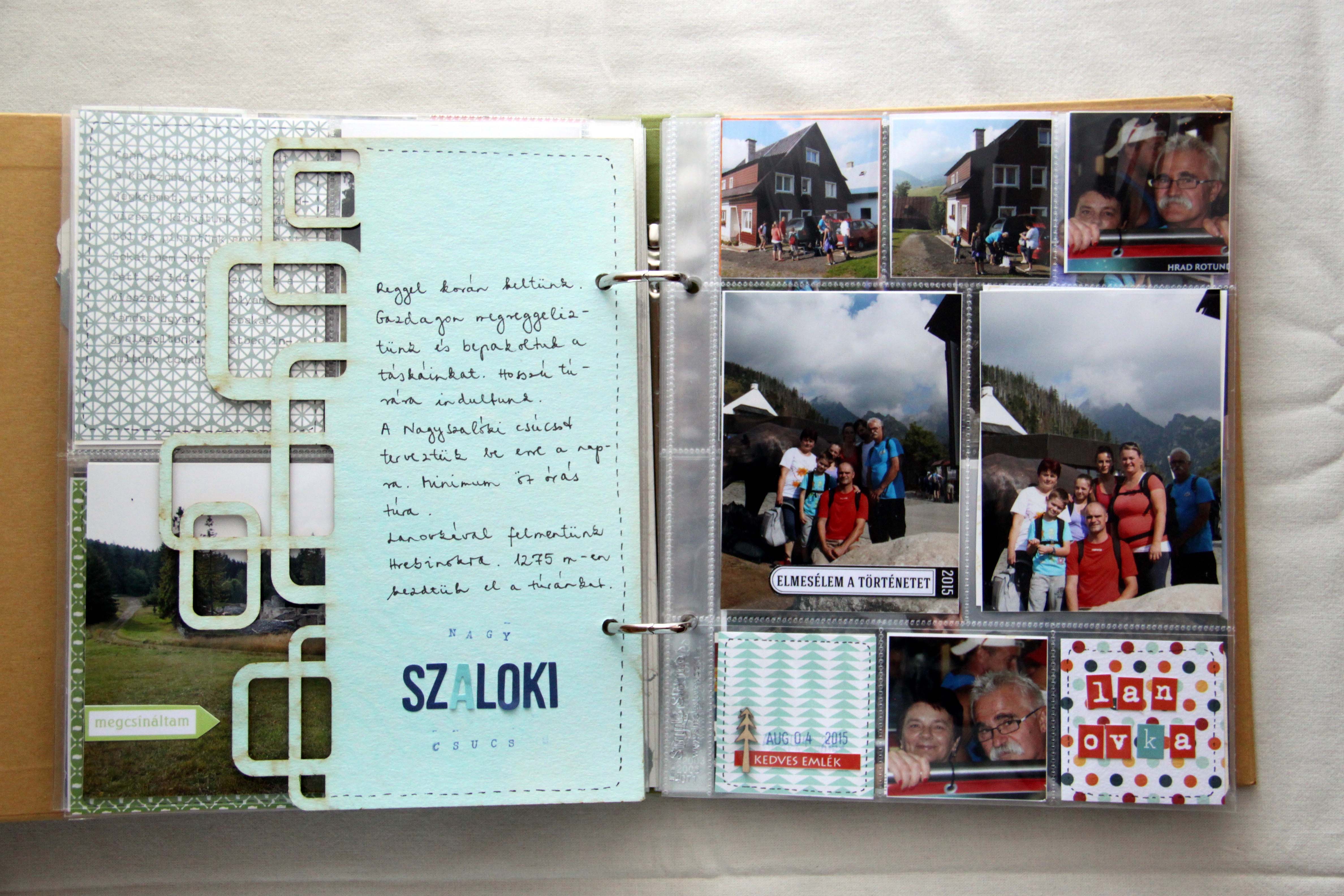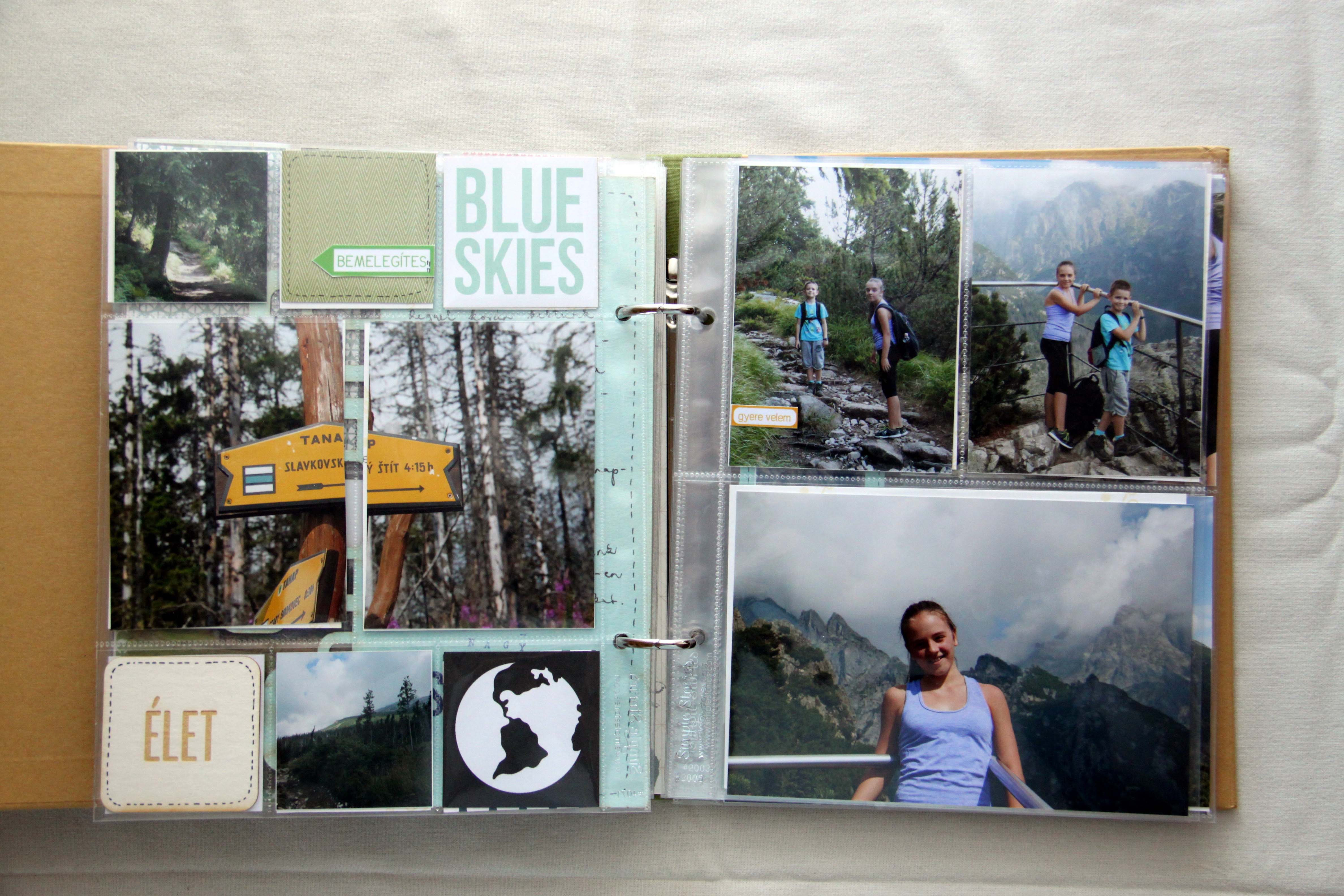Már két éve, a legutóbbi túránk után is kapott egy ugyanilyen méretű albumot ajándékba. Ebbe az albumba viszont belekerült jó pár 15×20-as fotó is, minimális díszítéssel, mert imádja a Tátrában készült természetfotókat. Használtam olyan felbontású tasakokat is, ahol 5×5 -ös képek is előfordultak.