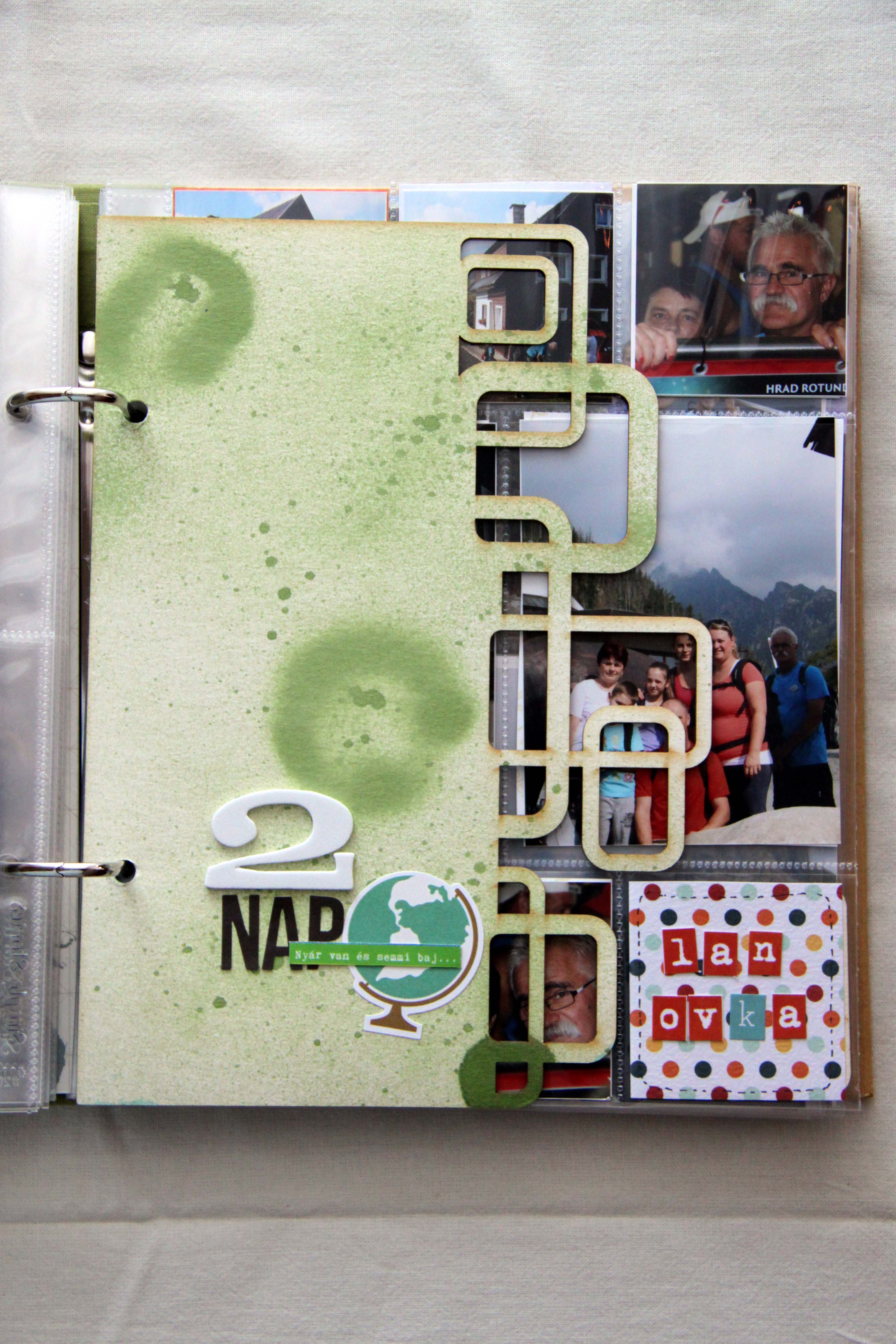 A már ismert Tátra oldalam, végül is a kezdő oldala lett az albumnak. A két nap elválasztására pedig egy másik csipit használtam, amit kicsit mist-tel és matricával díszítettem.