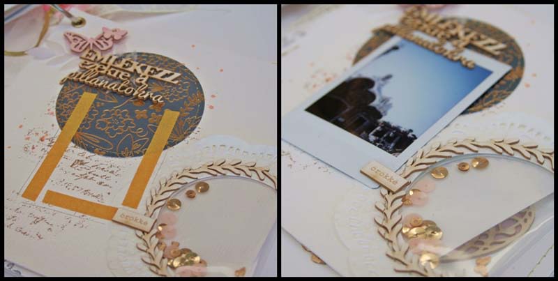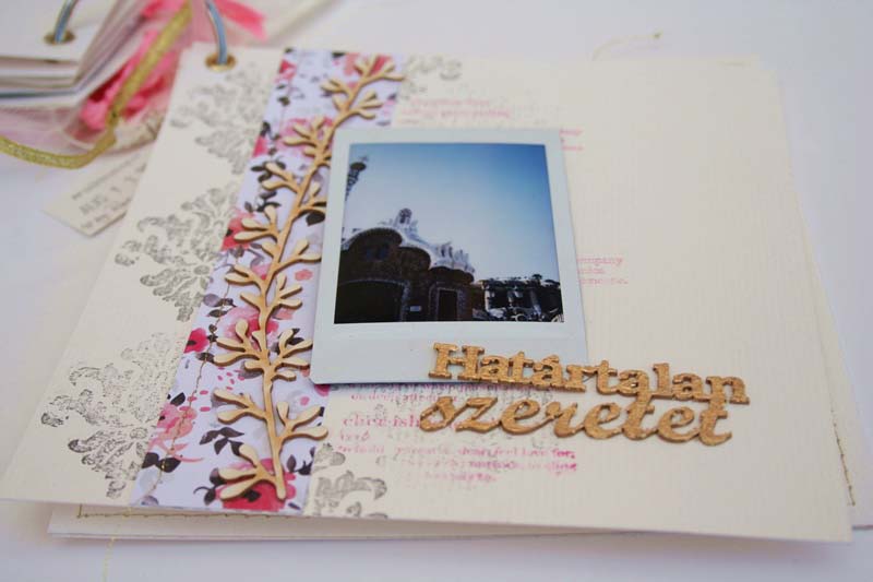 […] De milyen albumot! Mosható, varrható, festhető kraft papírt domborított, a belsejébe leporelló szerűen behajtogatott egy sima kartont. Az oldalakat csodaszép papírokkal, esküvős címkékkel, szalaggal és egyéb kiegészítőkkel díszítette. Mikor készen volt az album, elcsomagolta a helyszínen szükséges kellékeket, mert az ifjú párról készült fotókat azonnal bele akarta ragasztani. Az ötlet nem újkeletű, máskor is készített már ilyet… […]