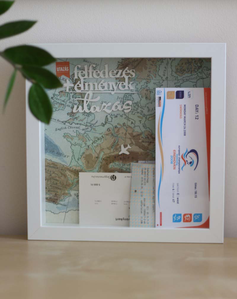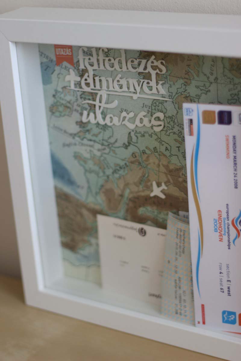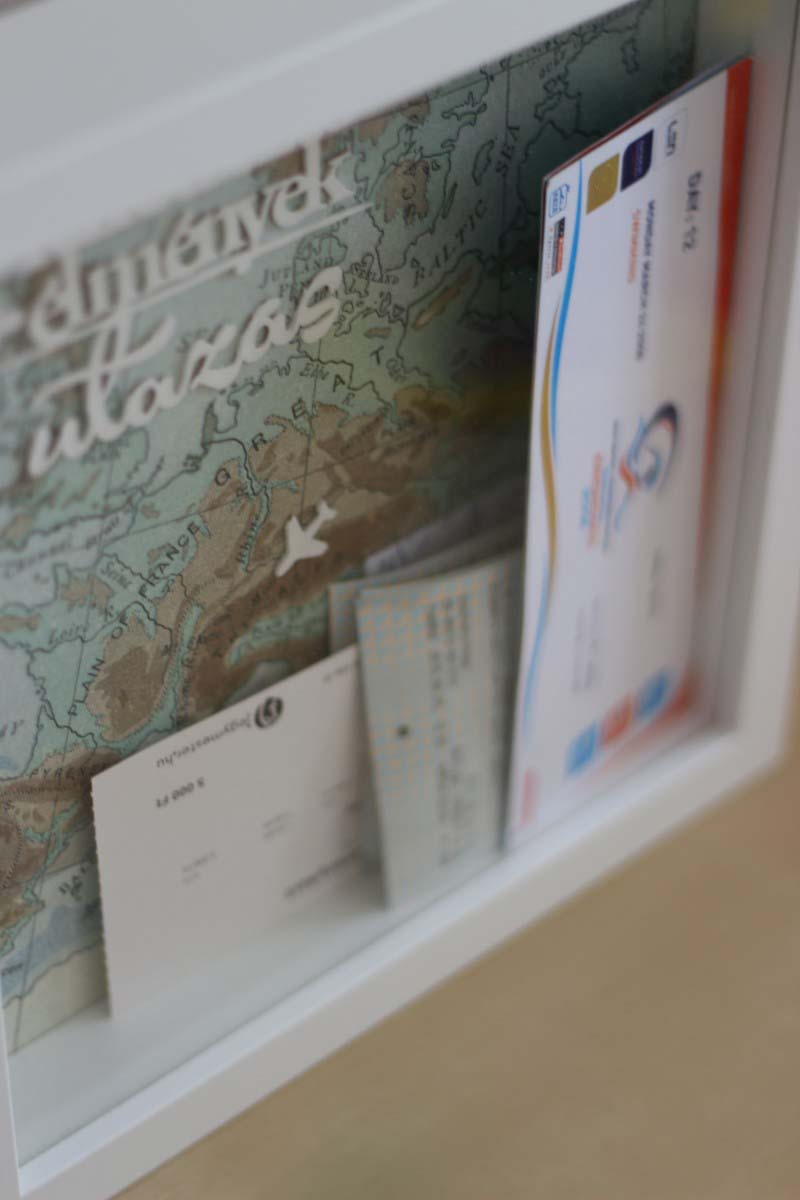 A lényeg, hogy itt nincs kötött kompozíció, tetszés szerint beledobhatjuk a jegyeket, papírfecniket, amiket utazásaink során összegyűjtöttünk.