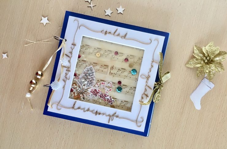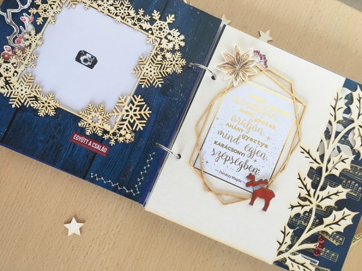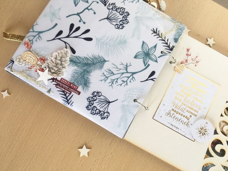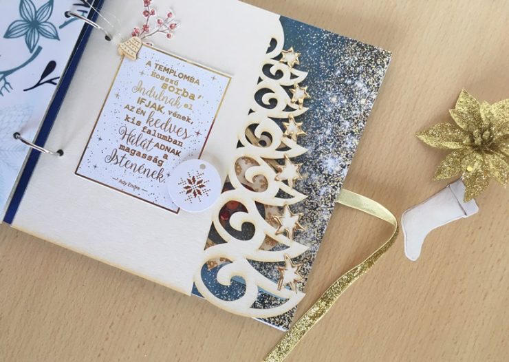 Ezt az albumot Édesanyámnak készitettem Karácsonyra. A "Töltsd meg ragyogással" alkotó csomagban levö kékes papirokat és pauszt használtam fel, kiegészitve egy kék szinü papirral, amely megmaradt az "Ajtók" alkotó csomagból és még két darab a szineiben passzoló papirból, az egyik a "Kattints!" a másik a "A divat én vagyok!" alkotó csomagokban voltak.
