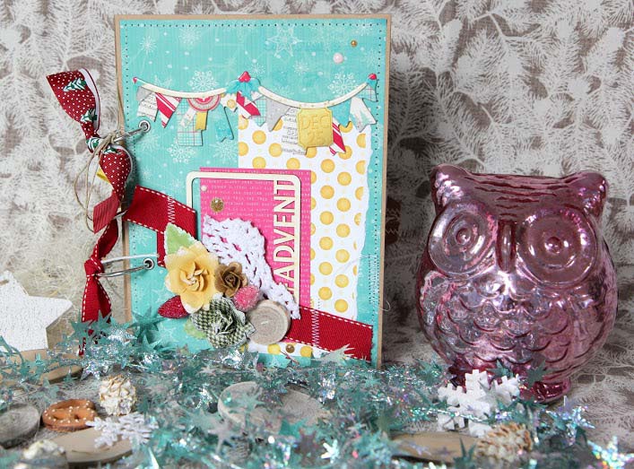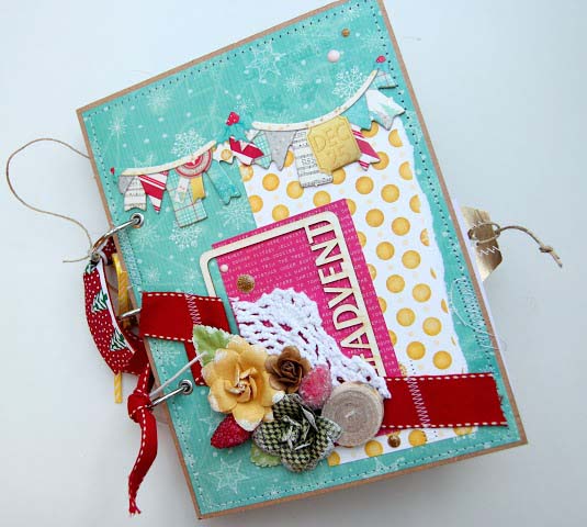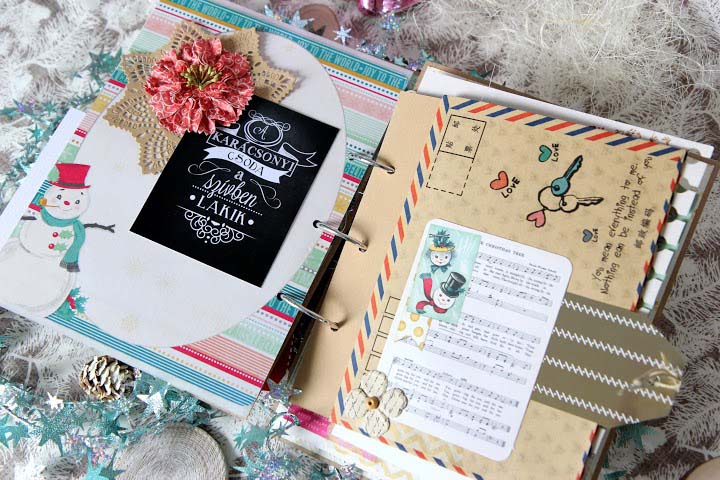 Csináltam még egy mini album Bo Bunny Candy Cane Lane papírból.  16×21,5 cm méretű a borítója. Maga a papír készlet nagyon vidám, színes, nem egy klasszikus karácsonyi papír. Nem is gondoltam, hogy egy nap leülök és csinálok egy mini albumot belőle. Mert nekem ebben az évben nagyon kraft világos kékkel a Karácsony : )))